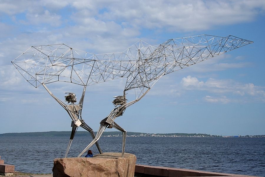 подаренная Петрозаводску Рафаэлем Консуэгра. Кубинец по рождению, а ныне житель Майами Р.Консуэгра – убежденный католик и убеждённый экуменист, сторонник восстановления единства христианских церквей. Основная идея его скульптуры «Рыбаки», установленной в 1991.г. на Онежской набережной, достаточно прозрачна. Два брата, два апостола Петр (основатель Римской церкви) и Андрей (согласно преданию впервые возвестивший Евангелие на территории позднейшей Руси) совместно закидывают над Вселенной сети, символ распространения христианской веры. Дар скульптора-католика единодушно признан лучшим из современных памятников Петрозаводска.